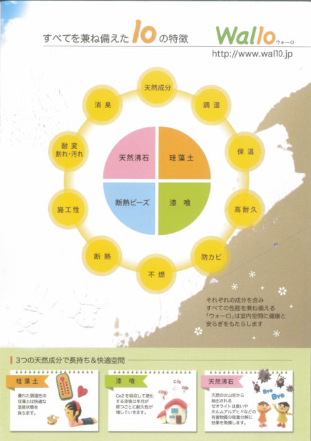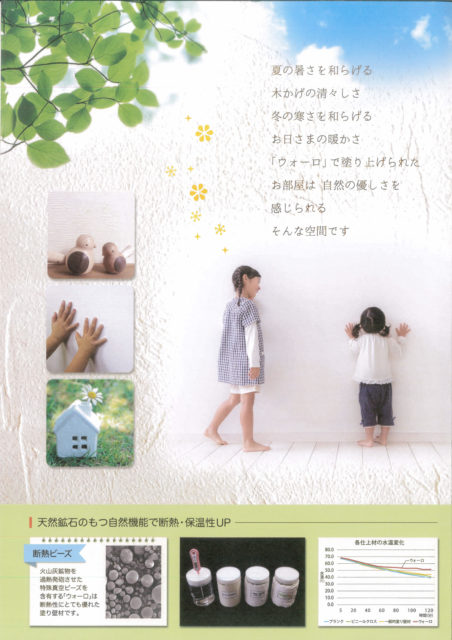 昨年4月に発売された自然素材の壁仕上げ材=ウォーロ。商品コンセプトは石油建材=ビニールクロスに価格で負けない自然素材をお客様のお宅に届けたいというものです。