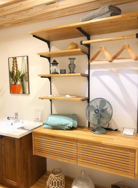 下の写真は洗面所で人気の棚の組み合わせとの事でした。展示のままのスタイルでご注文する方もいらっしゃるんですって。