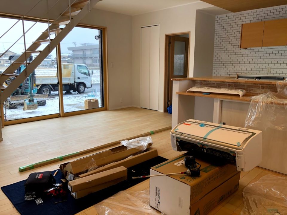 さて、昨日は七尾市でご建築頂いているH様邸のハウスクリーニングの日でした。工事中ずっと敷いてあった養生ボードがめくられ、室内のドアや引き戸が設置されて、いよいよ半年以上考え続けてきた空間の完成形が目でみれるようになります。