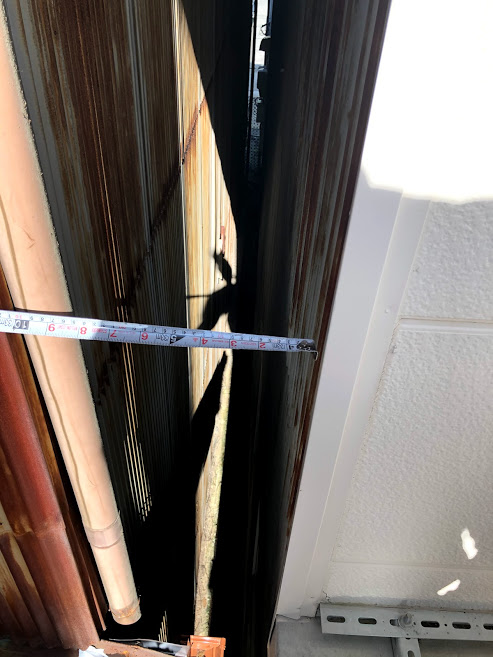 平屋ならまだしも2階建ての住宅なので、足場を組めるのか?そもそも足場を組めても板金業者さんが仕事を出来るのか?そんな事を考えて現地で業者さんに電話で相談しました。
