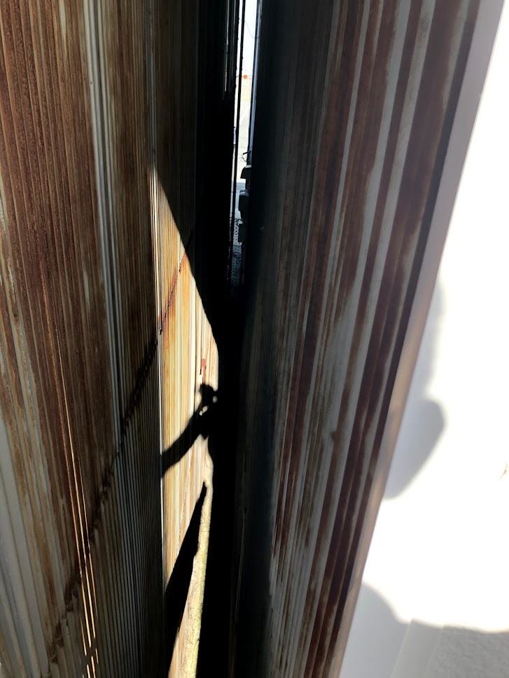 お隣の外壁との隙間が30cmくらいしかない場所での外壁リフォームです。板金業者さんと足場業者さん、堀下で話合ってもらったところ「まぁ、まんとかなるでしょ。」との事でした。たのもしーーーー!!!