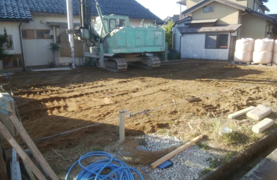地盤改良工事をしているところ