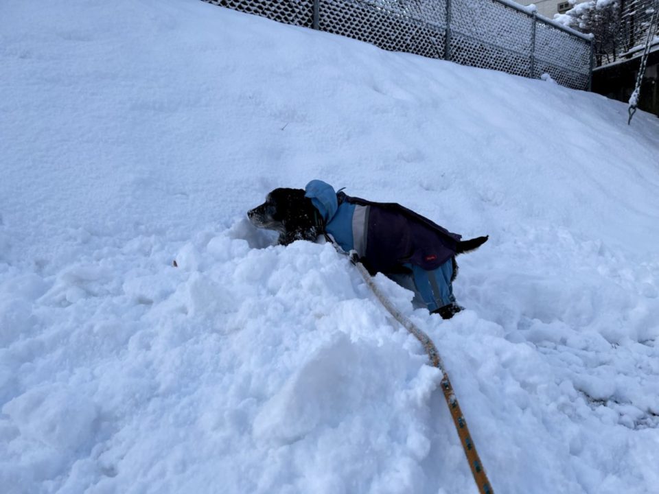 13歳になってはじめてのお散歩は雪と戯れていました♡