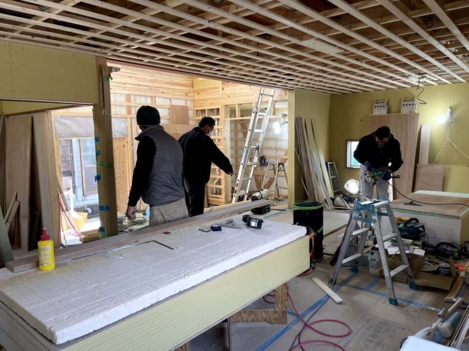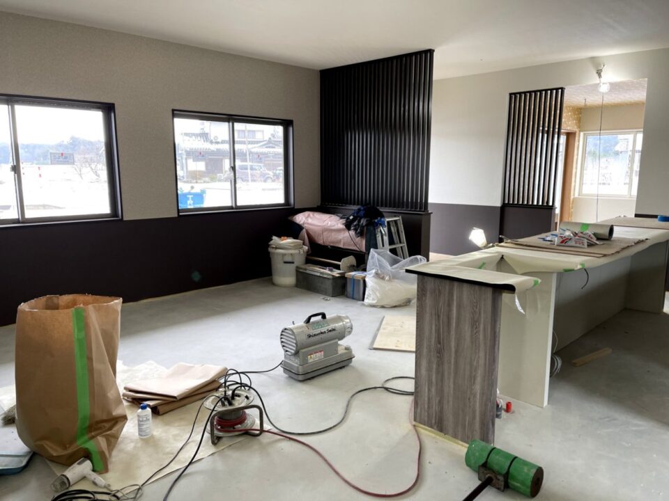 大工工事が完了し、内装工事も終盤に差し掛かっています