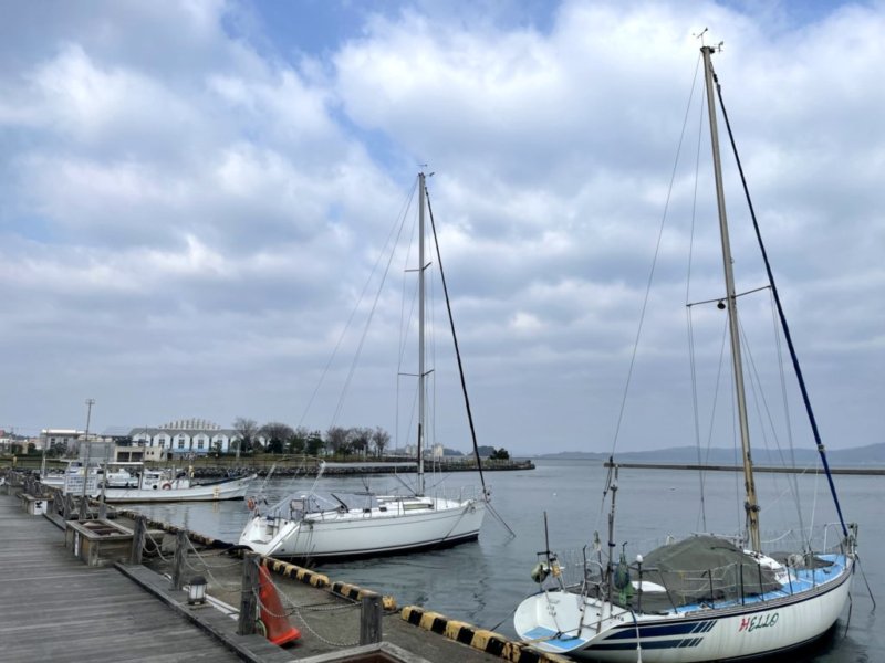 大田の交差点で折り返して、能登食祭市場へ。食祭市場付近の船の係留場では、県外ナンバーの釣り人が海に釣り糸を垂らしてました。そういえば、前回走った時は大きなタコをつっている人がいてビックリしたな〜。こんな大きなタコがこんなところにいるんだ!って。