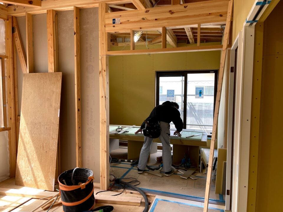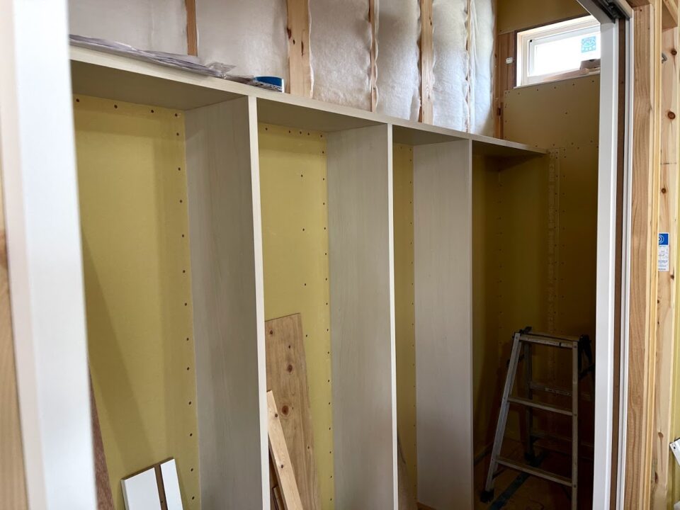 2階ホールの収納を造作していた大工さん。いつもありがとうございます。