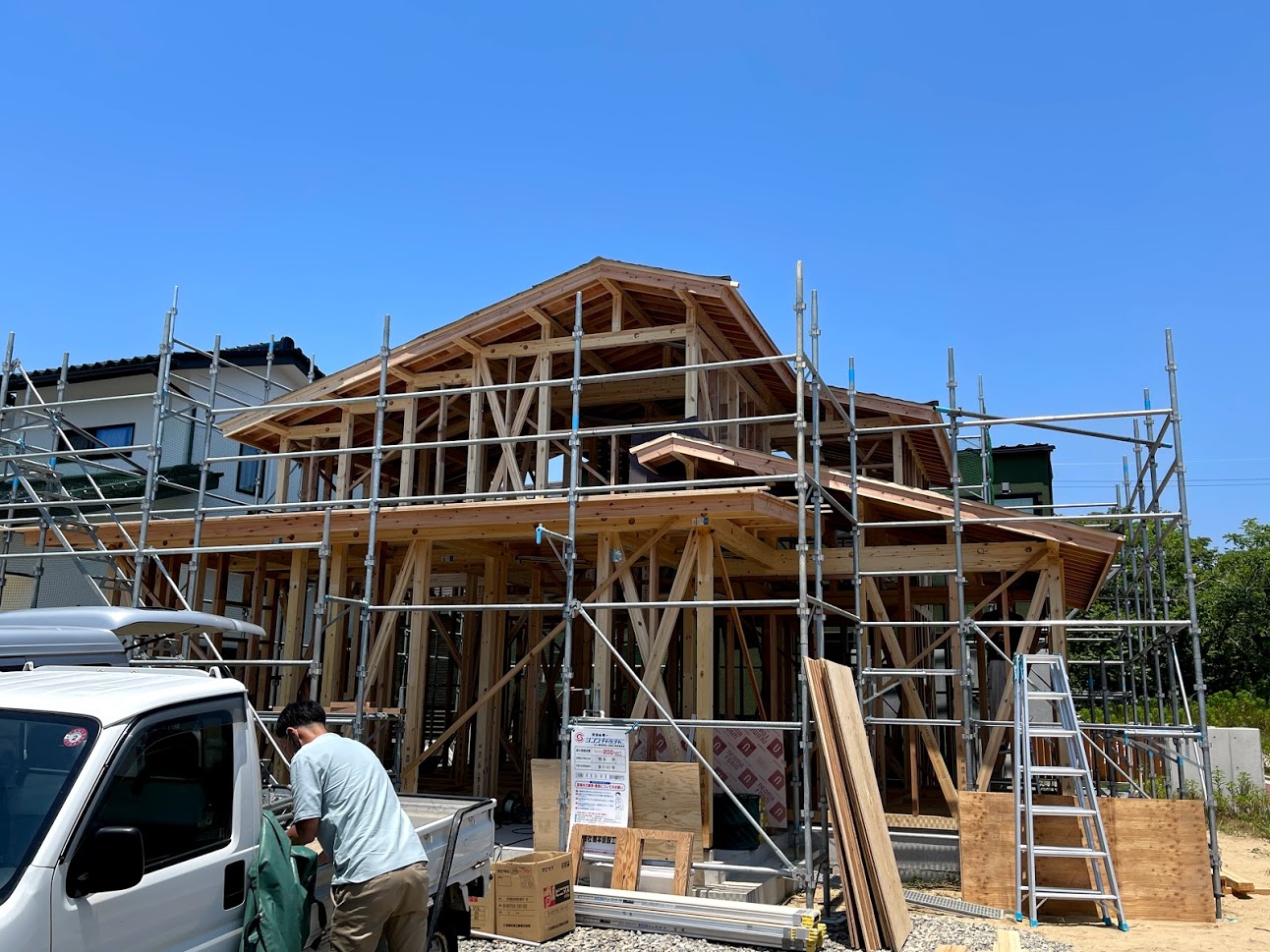 さて、昨日は堂下のお手伝いで一昨日上棟した志賀町の現場へ行ってきました。