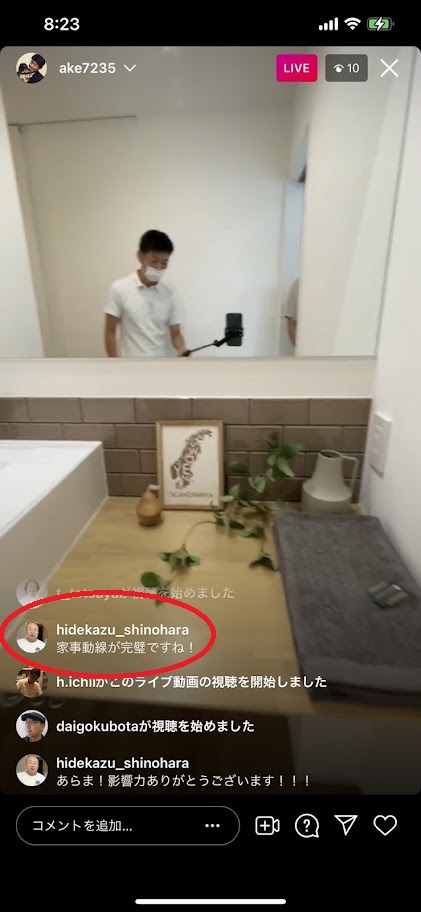 シノハラ社長が送ってくれたスクショ。気にかけてくれてコメントをしてくれたり、LIVEのやり方のアドバイスもしてくださいました。