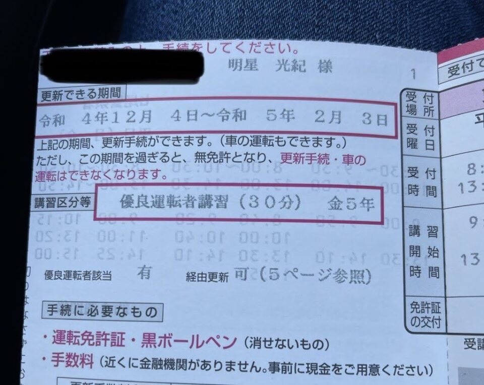 さて、お昼に話が戻りますが、昨日お昼に帰宅すると運転免許証の更新ハガキが届いていました。