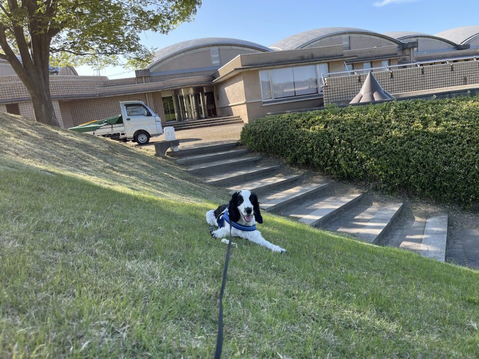 もちろんこの用事は欠かしません。目の前をお友達ワンコ(柴犬)が歩いています。