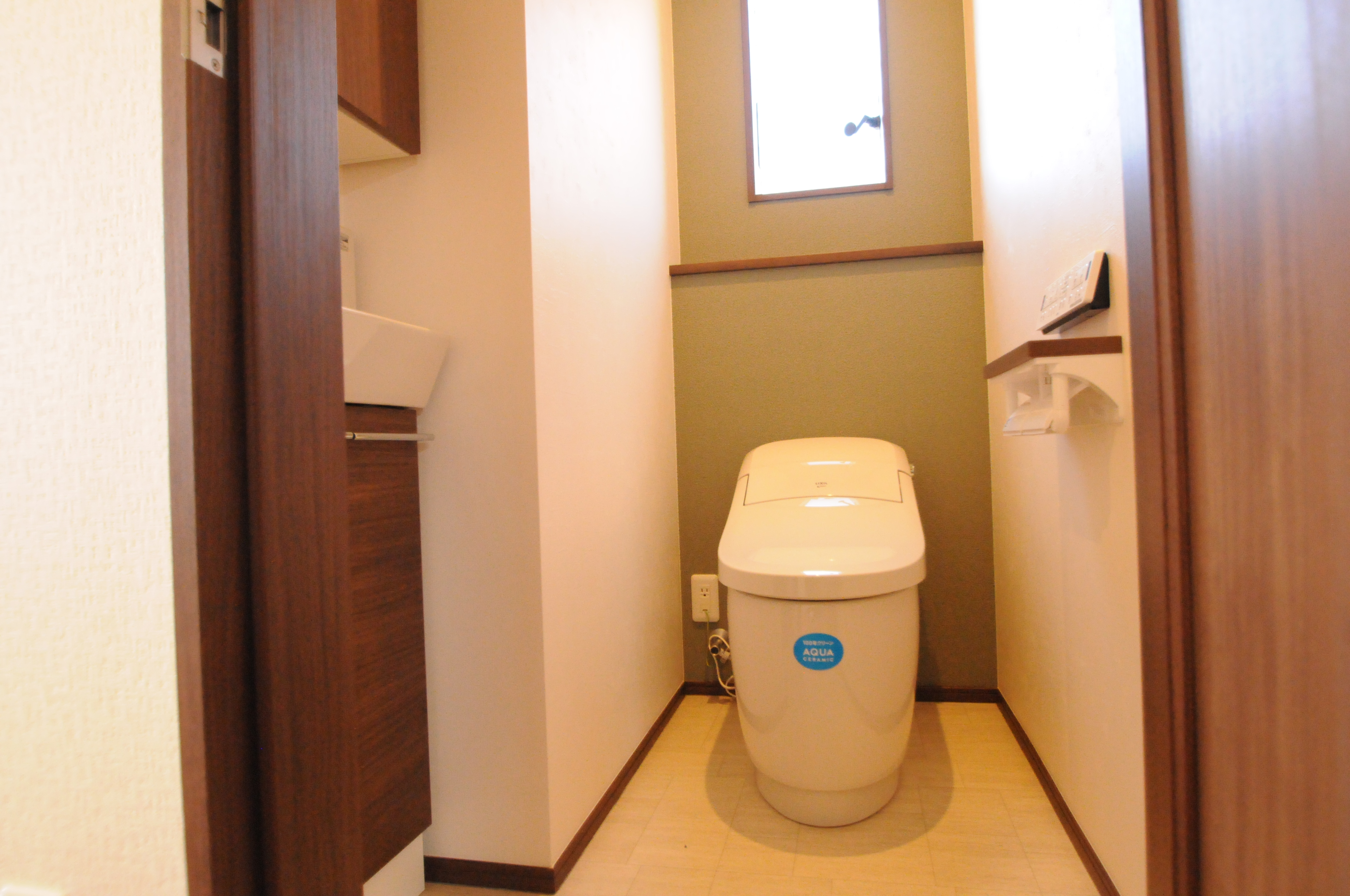 便器は最新の手間要らず(100年クリーン)のLIXIL製のプレアスです。