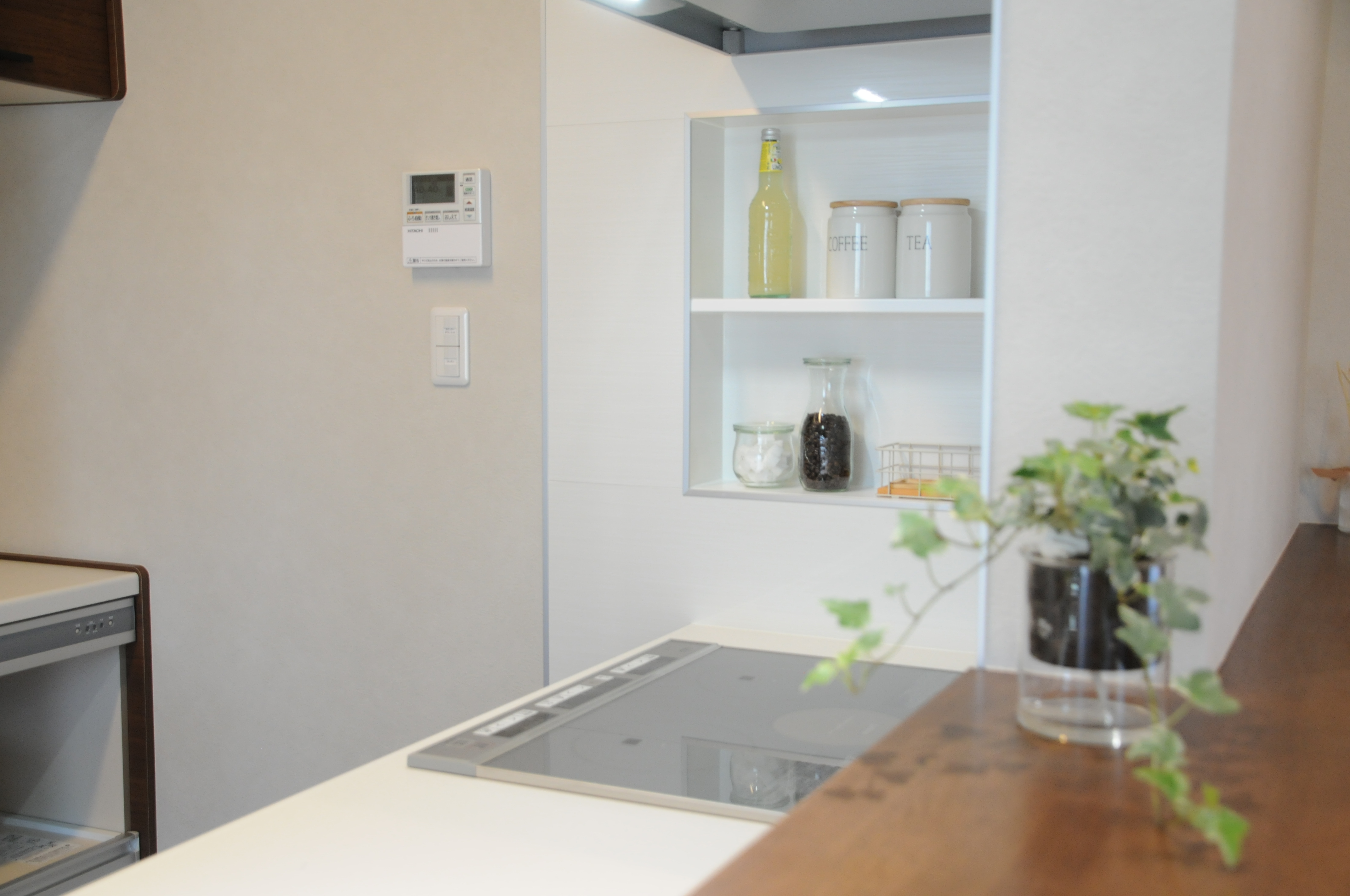 キッチンは手元がお客様に見えないようなところで、キッチンから部屋(LDKと和室)が全体的に見渡せるところ