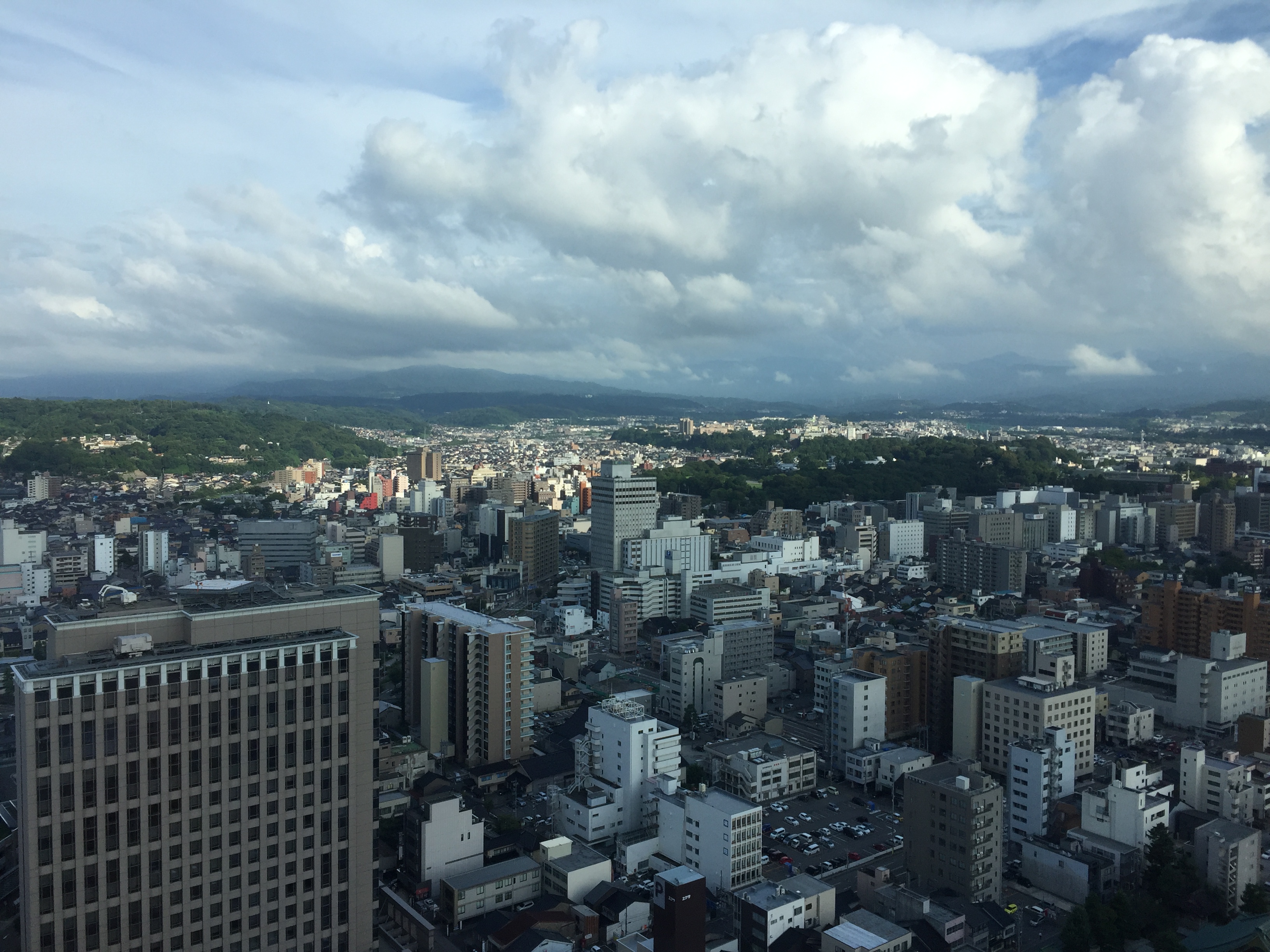 はい。集合場所は30階という事で高速エレベーターに乗って、30階につくと、目の前には石川県では県庁に続いて2番目に高いところから金沢の景色を眺める事ができました♪