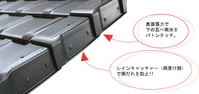 で、この苦情を未然に防ぐように、ある瓦メーカーさんが 袖瓦から雨が出来るだけ落ちないような細工を完成させました!