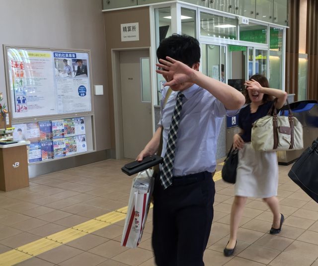 2016年7月27日に別件で七尾に来てくれた海津さん(左)と岸さん(右)。撮影しようとしたら芸能人みたいに拒否されました(笑)