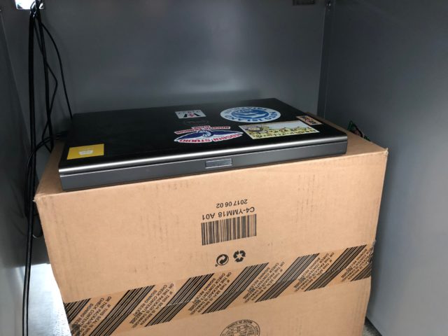 普段はボクの机の下に隠れているノートパソコン。机の上には外部モニターとキーボードが置かれていて、それらで操作しているので、縁の下の力持ちといった存在です♪
