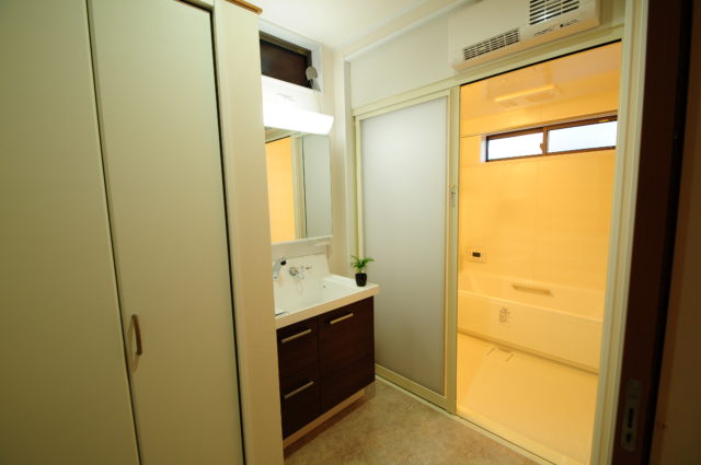 キッチンやLDKからの水廻り動線を良くするのは間取りを検討する上では当然の事になっています(笑)さらに快適に使えるように洗面脱衣室にはタオル等を収納できるスペースや冬場でも快適に着替えられるように暖房乾燥機を設置するお宅も増えています。I様邸もお風呂の入り口の上に設置されてますね。