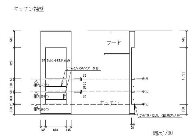 ちなみにこの他にもキッチン付近の天井伏図、キッチンのカウンター展開図、リビング飾り棚展開図を作成しました。こうして提案したものをご採用頂けるとより一層想い入れのある家になるし、ボクの満足感も高いです(笑)