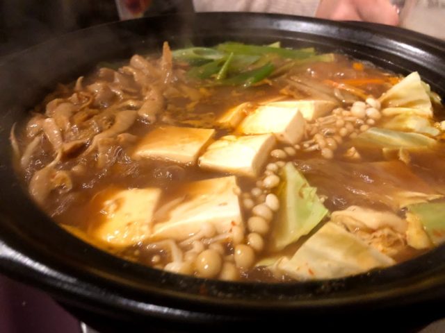 モツ鍋。スープもピリ辛で美味しかったーん。