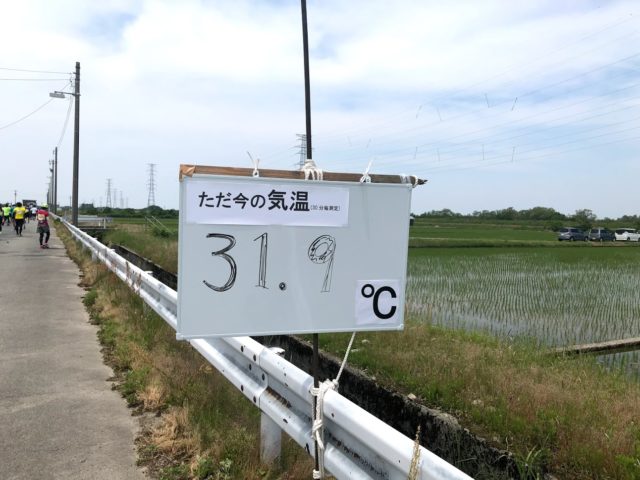 ハーフ地点での気温表示は33℃くらいだったかな?27kmくらいからは黒部川沿いを延々と走るので、心地よい風で表示気温程の暑さを感じませんでしたが、脚力と心肺は限界でした。。。