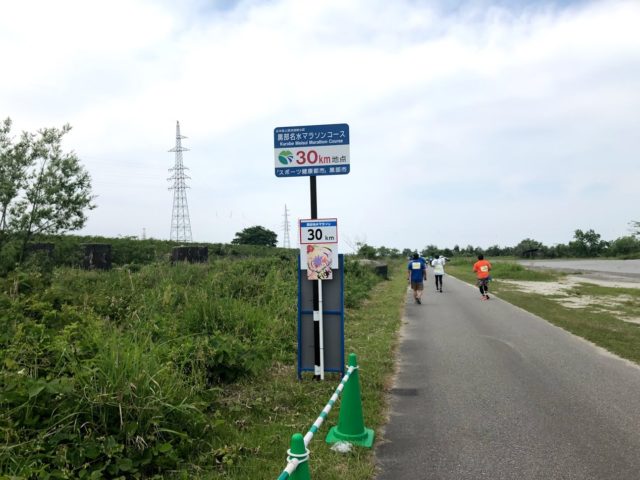 なんとか5時間半くらいでゴールできるやろ。。。と甘い気持ちがあったのと、気分的にいつも聞いている音楽が耳障りになってきたので、35kmくらいでイヤホンを外してしまいました。