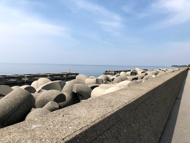 ゴール手前。残り4kmくらいの海岸線。もちろん歩きました(笑)太陽の照り返しがキツかったー。