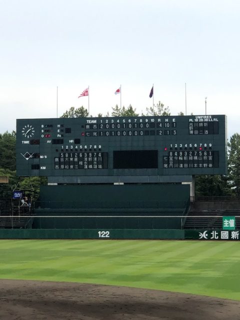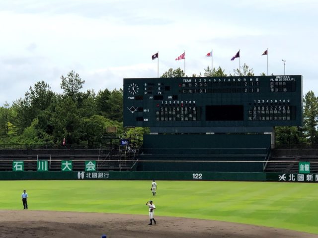 8回裏に七尾高校に同点のチャンスがあるもチャンスを活かせず、高校野球特有の9回の大逆転サヨナラ勝利を期待しましたが、相手ピッチャーに見事に抑えられて残念ながら負けてしまいました。。。