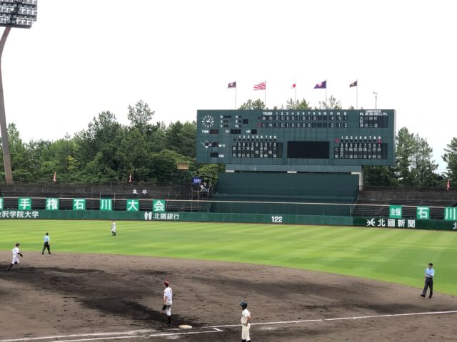 スコアボードのヒット数を見れば鹿西のワンサイドゲームでもおかしくない感じですが、七尾高校は要所をしめてなんとかくらいついていきます。