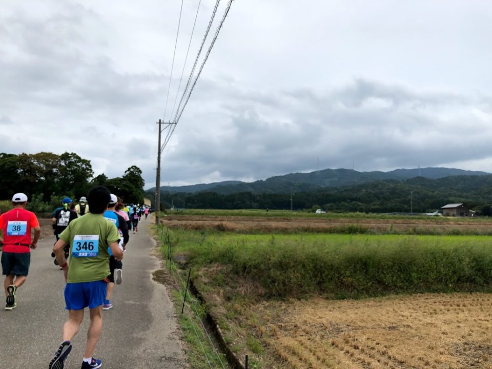 山を降りると多少のアップダウンはあるもののひたすら平坦なコースをはしっていきます。意図せず、走力のある集団のところで走っていたせか、ここでかなりごぼう抜きされます(苦笑)