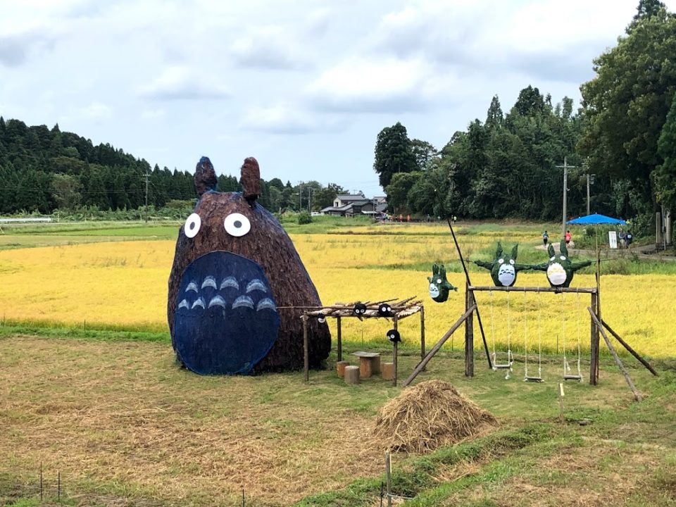 登ったら当然降るわけで、かなりのスピードで山を駆け下りていきます。ここでタイムを戻さないと!そして、下りきったところの路上看板で「また来年、トトロに会いにきてね♪」というメッセージがありました。「は?トトロなんていたっけ?」と思いながらしばらく走るとトトロいたーーーーー!笑