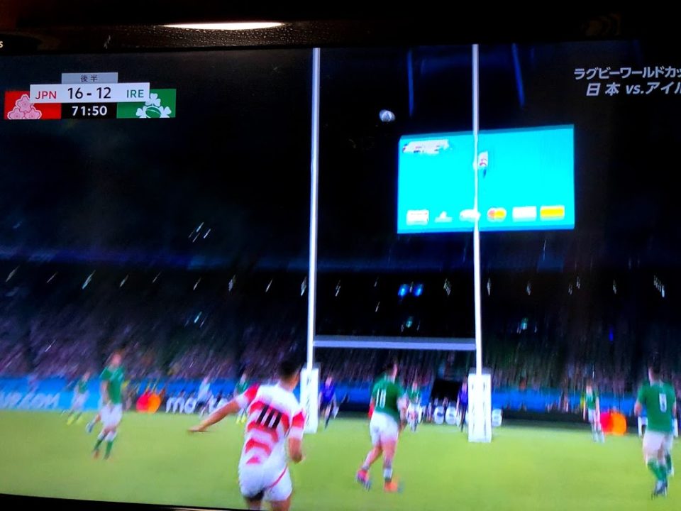後半も日本のタックルはすごくて、アイルランドの攻撃をどんどん跳ね返していきます。その後の展開はニュースでも報道されている通りなのでお分かりですよね。って説明ザツやな!(笑)