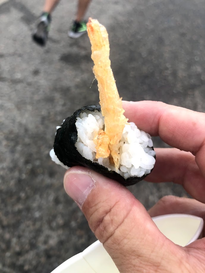 新湊の町を抜けて今度はこのコースの見どころの一つである新湊大橋へ。新湊の大橋の手前ではますの寿司と白エビ天むすでエネルギーをチャージ^^