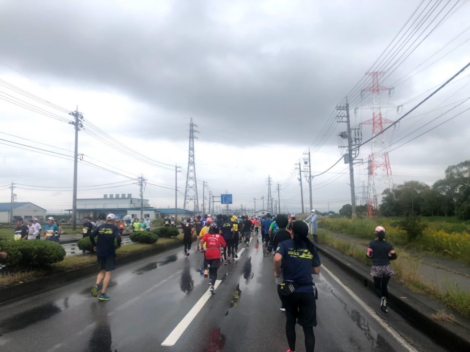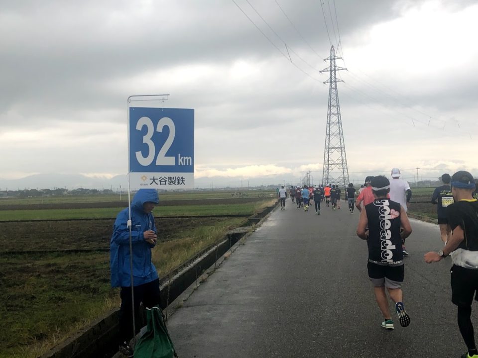 25km付近では小雨だった雨も32km付近からついに本降りに。。。