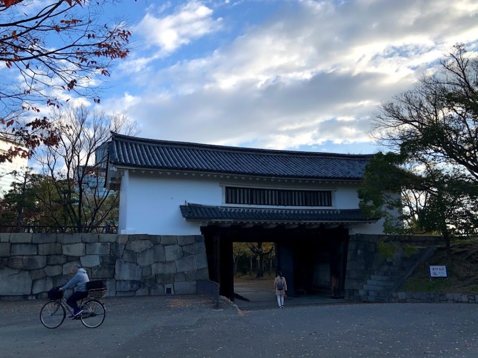 天守閣に一旦別れを告げて、玉造門をくぐって、桜庭と梅林を超えていくと右側に青屋門が見えてきます。この門から入ってくる外国の観光客の方も多数おられました♪