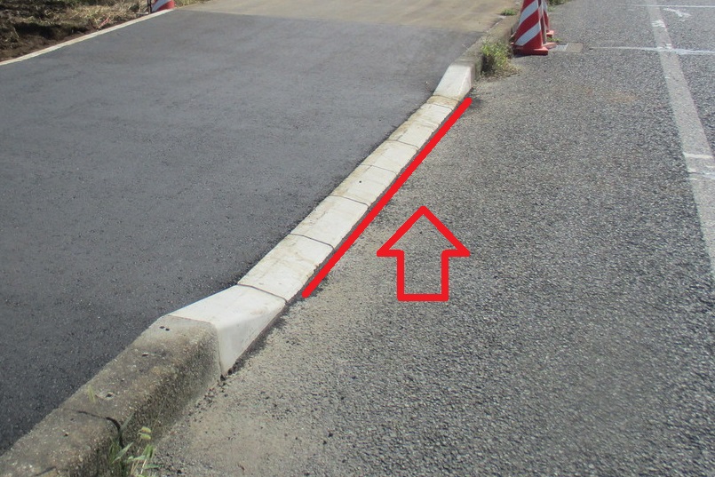 切り下げに対して直角に近い角度で乗り上げれば問題ないのですが、斜めに進入してハンドルをとられてしまいました(汗)