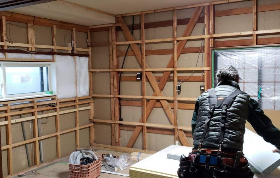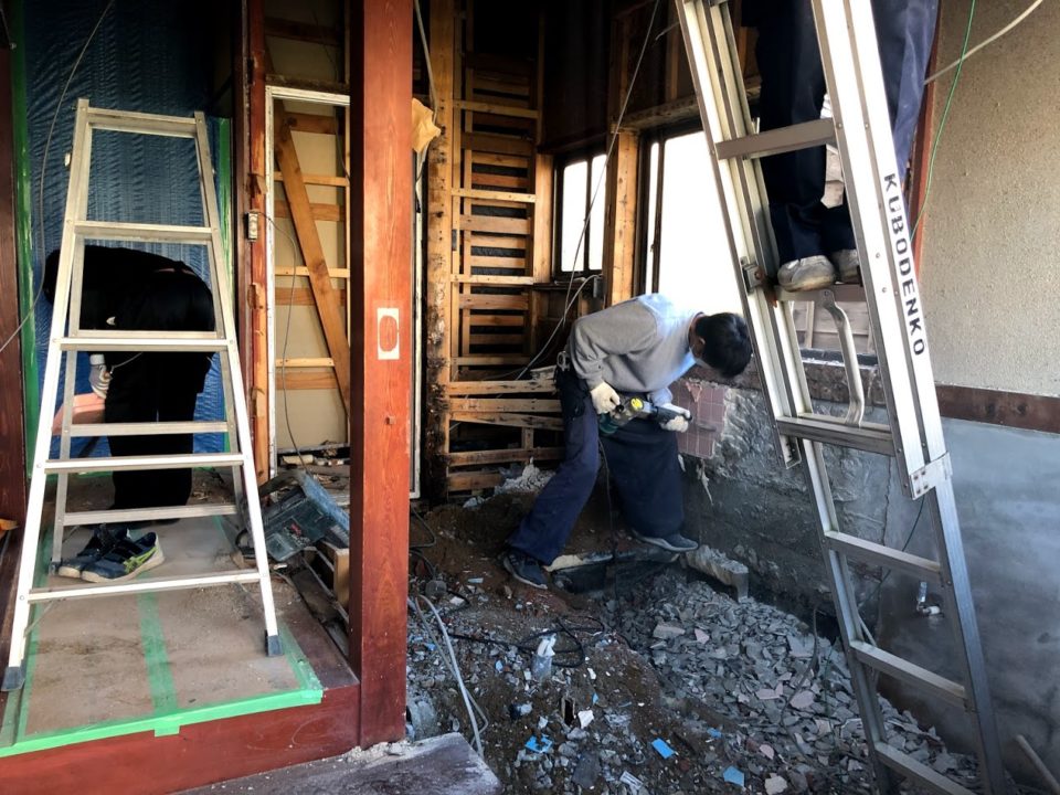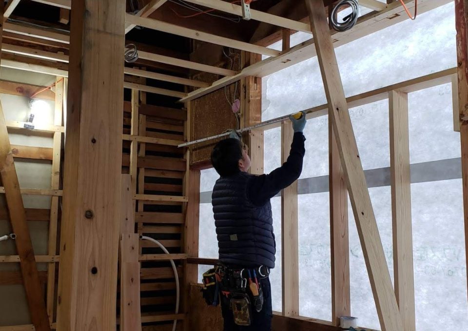 大工さんが新しい窓を設置して、新しい壁をつくっていきます