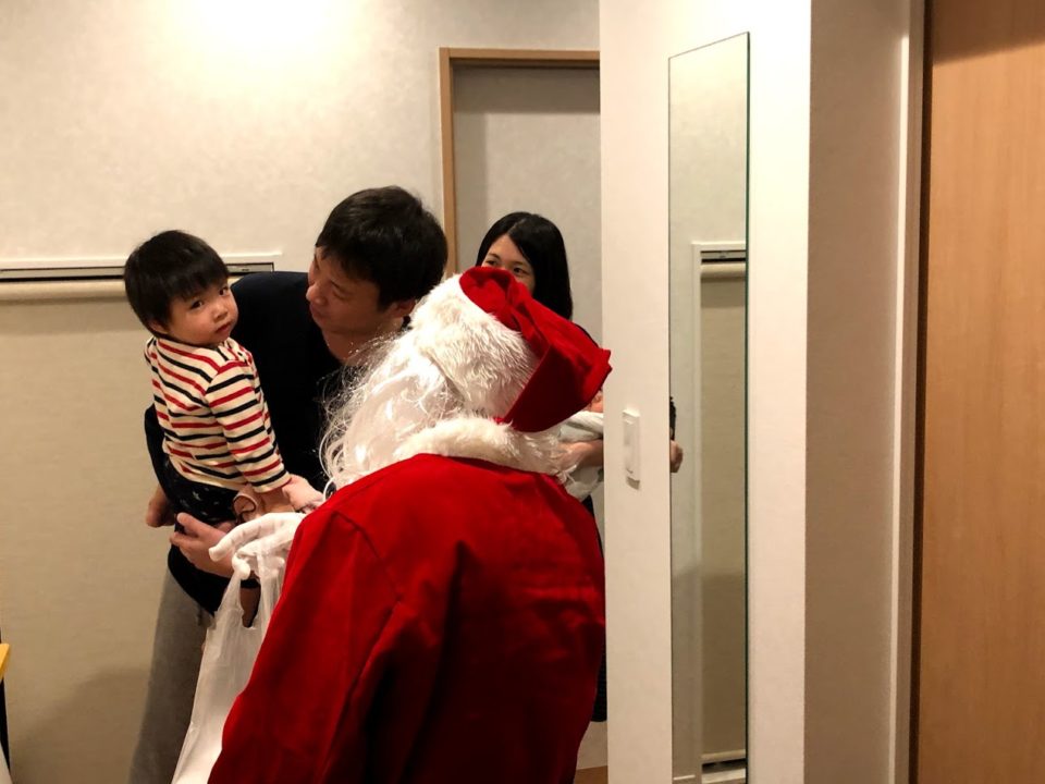この日はもう一軒回って終了。そして昨日の1軒目は金沢でご新築頂いたお客様宅へ。はい、ここでボクもやっと念願のサンタの衣装を着れました。