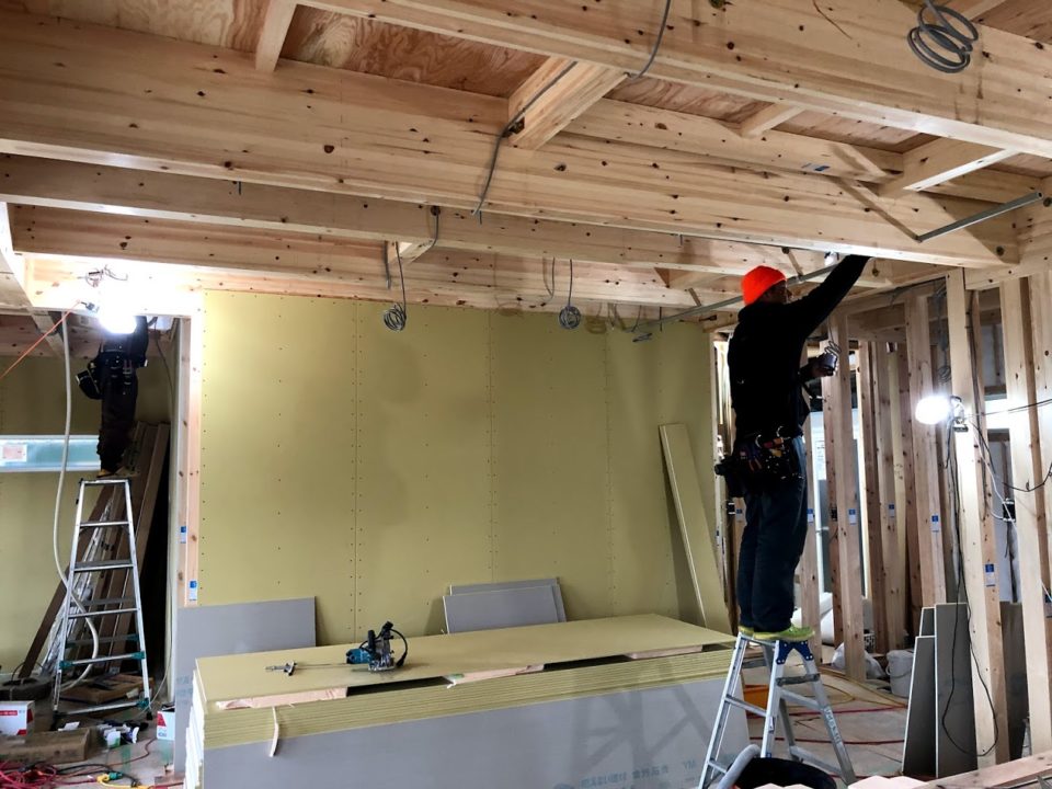 時折雨風が吹き荒れる中、昨日は現在担当している現場の確認に行ってきました。七尾市S様邸では、エアコン工事の真っ最中。LDKの作り(壁や扉、階段の設置位置等)を考慮して今回は天井埋め込みエアコンの採用を決定し、その先行配管をしていました^^