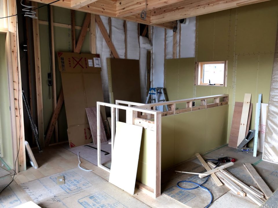 キッチンの腰壁造作の骨組み。結構頭を悩ませながら図面を描いたので仕上がりがとっても楽しみです^^