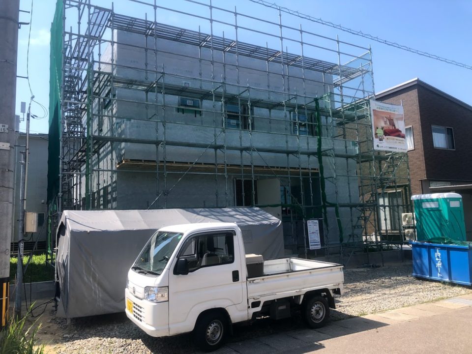 途中、今まで一度も足を運んでいなかった現場(担当:伊藤・白石)へ状況確認(外部のみ)によってみました。建物が道路に近いとやはり大きく感じますね~♪