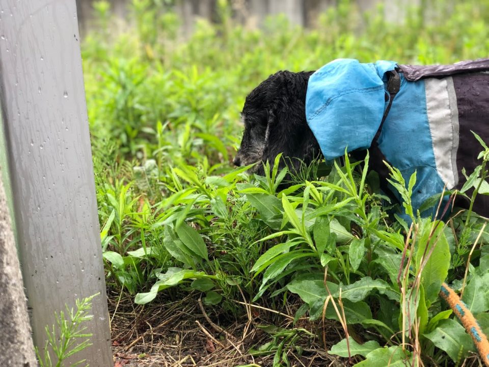 お散歩の途中に草も食べます。(もちろん、除草剤がまかれていそうなところの草は食べさせませんよ^^)