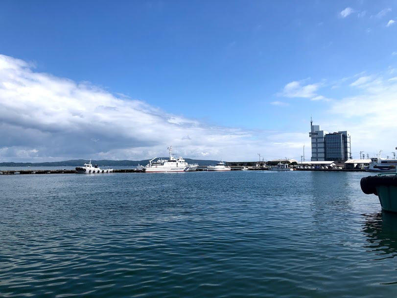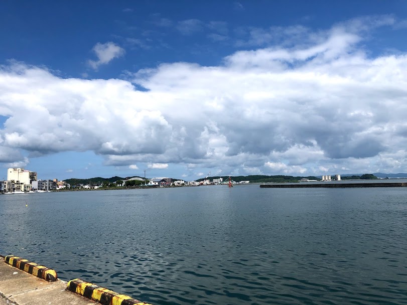 大田の交差点で折り返して今度は海沿いを走ります。矢田新町付近まで国道?を走って、海を眺められる道へと入ると海が広がります。
