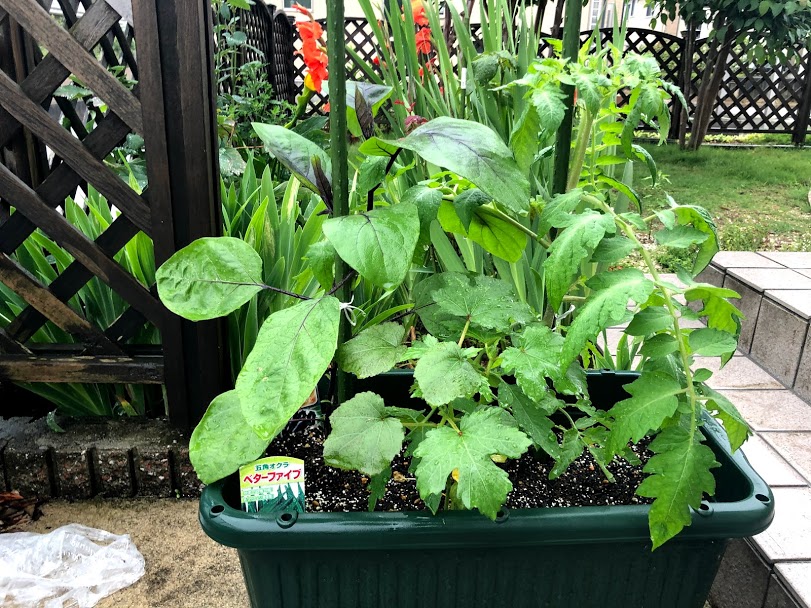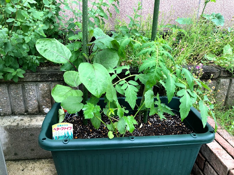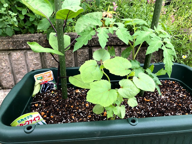 6/13にプランターに入植。植えたのはナス、トマト、オクラです。