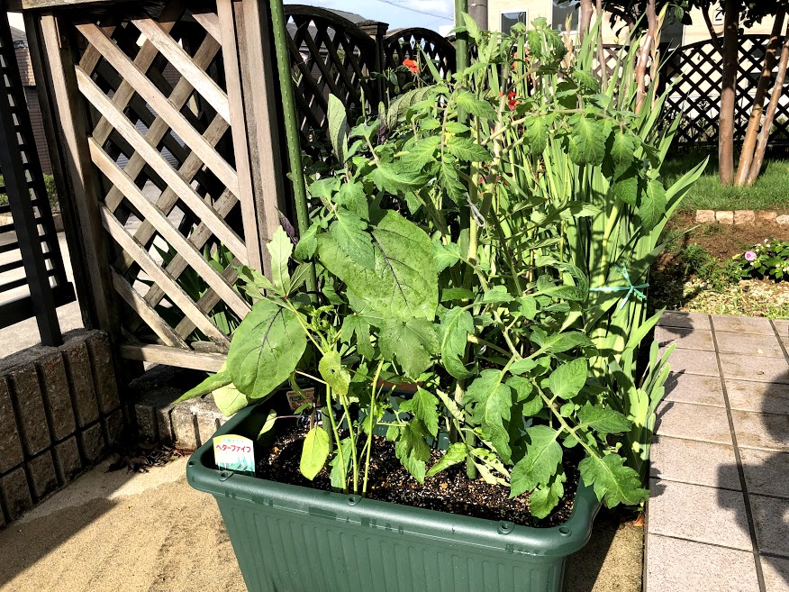 トマトの成長がゴイスー。オクラもかなり大きくなりました。