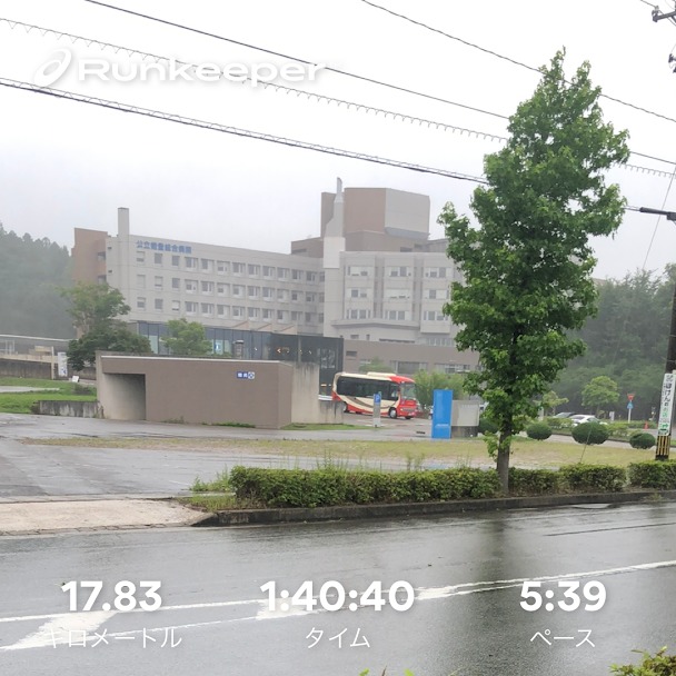 最初の30分は蒸し暑くて死ぬかと思いましたが、30分を超えたところで恵の雨が降ってきて、さらに30分付近まで続いた上り坂が転じて下り坂になったので、比較的快適に走れました。