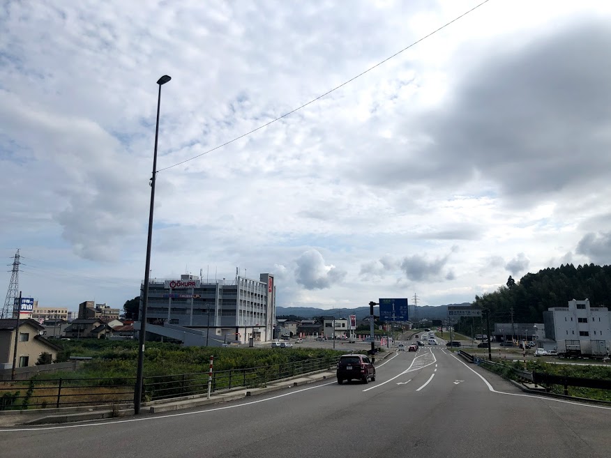 延々と続く直線(国道159号)を南下していきます。ここは8km地点くらいかな?徐々に青空が広がって気温も上がってきました。