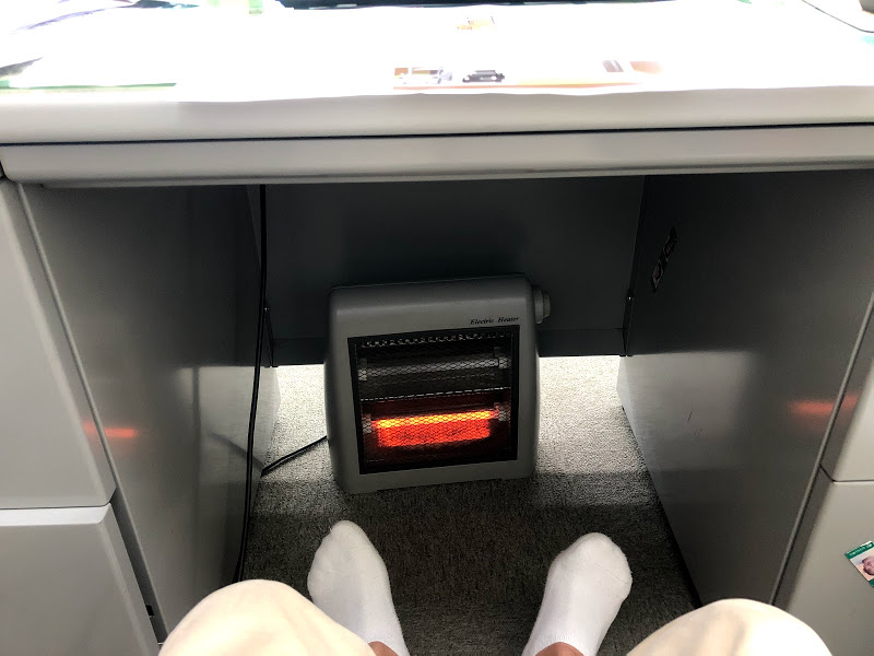 おっと話が逸れました。なので、足元にはヒーターが必須なんですよね〜。しかも、シティハウスの事務所は今日(こんにち)のような断熱意識が高まっていない時代の建物なので、断熱性能も低め。。。