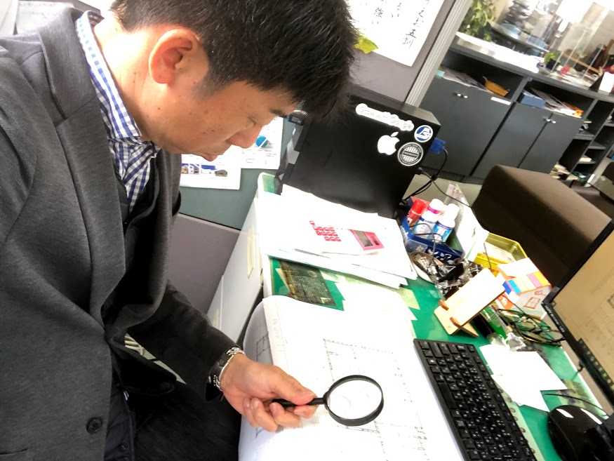 小さい文字が読めないので、ついに虫眼鏡出動です。なんで若い子ってこんなに小さい字を図面に落とし込むんですかね〜。笑