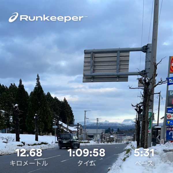午前中の買い物の際、能越道から見える赤浦潟コース(自称)の路上に雪が少ない事を確認していたので、6kmくらいまでひたすら道路を走って、目標距離に到達したらUターンしようと計画してのランニングでした♪