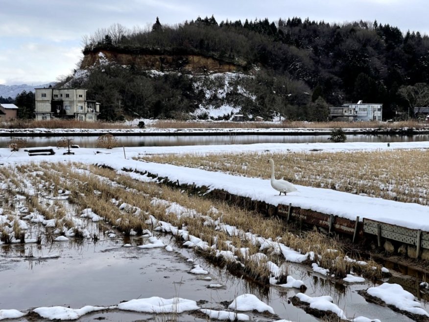 坂を下って赤浦潟沿いの道を走っていると白鳥を発見!2羽で行動しているのを見かける事が多いのですが、昨日は1羽のみでした。